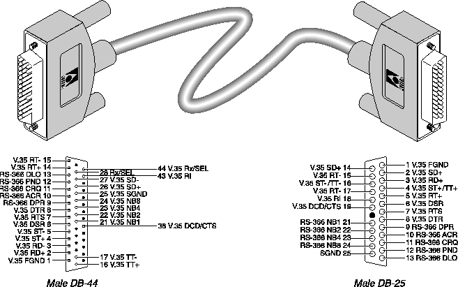 V.35/RS-366 cable to generic serial host